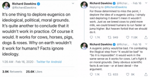 To call Richard Dawkins “controversial” would give him too much credit. A noted evolutionary biologist and more noted racist, Dawkins’s brand of rhetoric is deliberately inflammatory. Recently, he applied it to the topic of eugenics in a Twitter thread. So that nobody can claim I’ve taken him out of context, here are the screenshots: