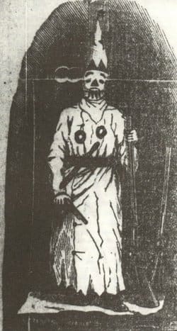 The message was clear: you are down there, the Veiled Prophet is up here, and violence is close at hand. The average St. Louis citizen would have recognized this symbol for what it was: an unsubtle invocation of the costume of the Ku-Klux Klan.