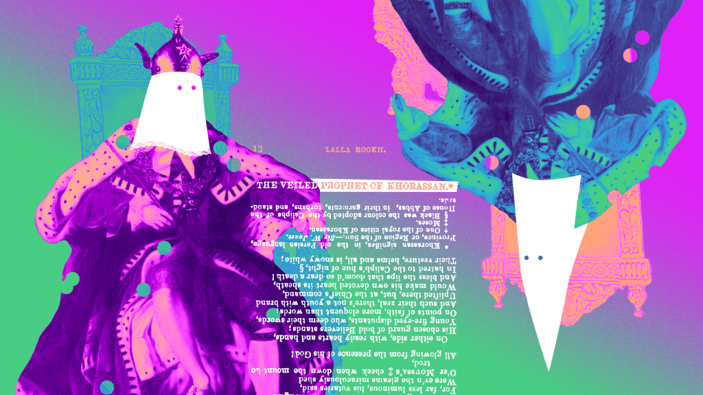 It is impossible to read this poem and interpret the Veiled Prophet as a swell guy doing his best. Yet the character—maybe just by virtue of being kind of badass—apparently proved a compelling one for later bigots, who enlisted him into their own cause. (Though, perhaps not coincidentally, these adoptees were, like the Prophet, also fans of slaveholding.)